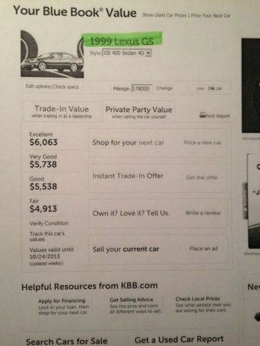 WE JUST PURCHASED A NEW GS350 SO WE ARE LETTING THIS GS400 GO FOR A GREAT PRICE. PLEASE COME AND TEST DRIVE THE CAR. NEW BATTERY NEW RADIATOR NEW TIMING BELT CHANGED NEW VALUE COVER GASKET CHANGED NEW WATER PUMP CHANGED ALWAYS CHANGED WITH SYNTHETIC OILS ONLY... I AM OPEN TO TAKE ANY REASONALBE OFFERS... |