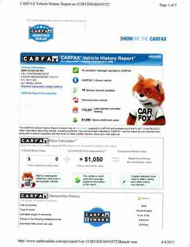 This is an absolutely mint 2006 GX470 that was traded in at my local Lexus dealership back in October. It was owned by a non smoker and the mileage is mostly freeway as the owner lived inland and had to commute. The condition of the vehicle represents that of one having 35k, not 115k. It has excellent original Titanium Metallic paint with excellent gray leather interior. The 3rd seat was never used. The tires are 85% and the brakes are excellent. After showing the vehicle to my wife (she fell in love), she wanted to keep it, so I decided to let her and had my Lexus master tech service the vehicle. My wife has been driving this vehicle since last October only driving around 2000 miles. This is a GREAT vehicle and is very comfortable to drive. There are (minor) scratches due to normal wear and tear, but nothing major. It runs and drives like new. You won't find a nicer one for the price. This vehicle was $53218 when new. See pic of window sticker for options.