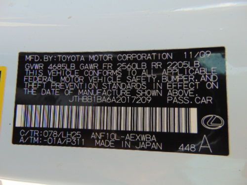 2010 lexus hs 250h 4dr sdn hybrid premium(US $26,894.00)