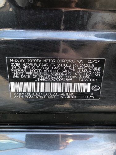 VIN (Vehicle Identification Number): JTHBK262X72051865