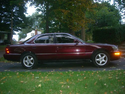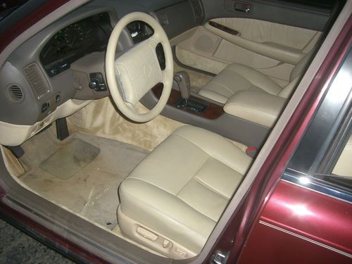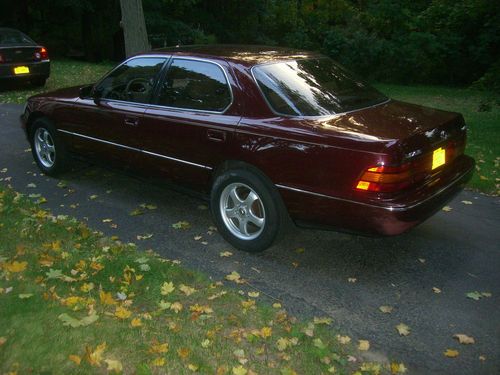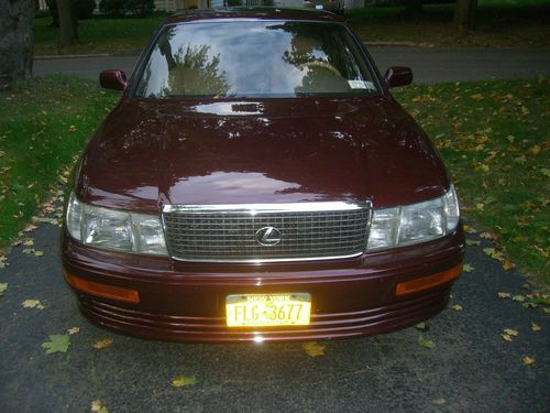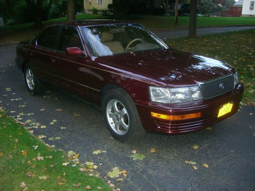 Low mileage rust free no accident body on this meticulously maintained LS400. Interior, paint, body and mechanics have been maintained and are in excellent condition with standard maintenance and upgrades of aging parts during my 3 years of ownership including: new brake rotors, pads, struts, lower ball joints, steering rack, front and rear engine seals, motor mounts, transmission mounts, timing belt, spark plugs, plug wires, ignition rotors, oxygen sensors, catalytic convertors, gaskets, seals and more to renew the car. Carpet and seats are in good condition, paint is nice, good carpets. Oil change, transmission flush, new battery, and inspection in September. Engine and transmission have no oil leaks. Very clean corrosion free Fla/GA car. Comes with original equipment 15" wheels and spare, and an original '91 radio. Has 16" custom wheels on the car with Lexus center cap. Car has normal wear, scratches, and dents for its age, 6" key scratch on front left corner of hood. Needs new front floor mats, door trim carpet on bottom of two doors and front bumper chrome vinyl trim piece.