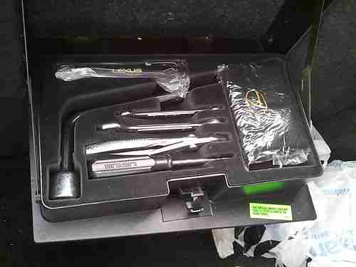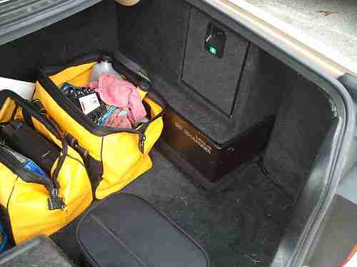 Set to debut at Pebble Beach later this month, the Crafted line offers the Storm Trooper treatment with high-contrast white paint and black trim. The interiors are done up in two-tone black and red, and Tumi has done up a special set of luggage to match.