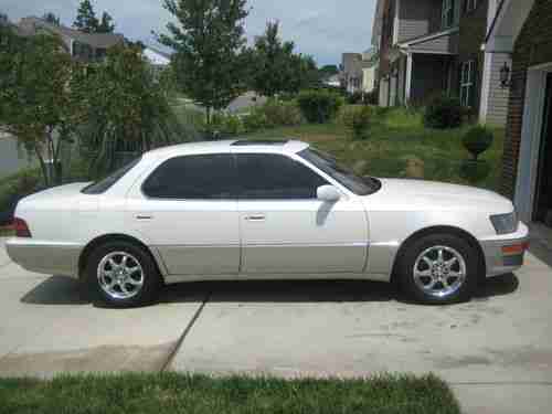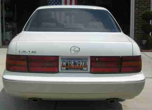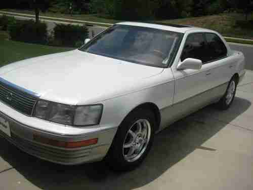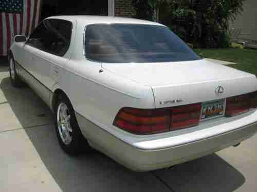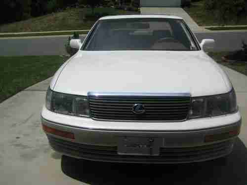 1994 Lexus LS 400. Original white pearlescent exterior paint. Overall good solid running condition and smooth riding car. Alignment and tire balance are excellent. Recently had the alternator replaced in March of this year and fuel system cleaned. The rack and pinion was replaced about 3 years ago. I will include all paper work of service done while I have owned the vehicle. Engine may have a oil drip somewhere as when it gets hot you can smell oil, but no oil appears to be leaking from underneath onto the ground. The service tech at AAA explained that the vehicle will be in need of a tune up sometime in the future, which may resolve the oil smell. I never have to add oil to the vehicle so it must be a minor leak if one at all. I usually clean the K&M air filter twice a year. Vehicle has good brakes and rotors. The battery is new as of 2011. Overall the engine runs strong still with no ticking or knocking and has great pick up for its age. Since I have owned the vehicle in 2008 I only run 93 gas in it from Shell. Transmission shifts very smooth while accelerating and has either normal or power mode. The inside of the vehicle has some cracks on the front leather seats from heat and age and it has been smoked in. Otherwise the back leather seats and floors are very clean. The dashboard cluster has the classic Lexus problem of not turning on and flashing especially when its cold outside. Lately if I take the vehicle for a drive over 20 minutes it eventually turns on, but until then it is dark and hard to read. The gas gauge may need a new float in the tank as it as well does not give a reading for sometime after the car has been on. I have not researched how to repair the dashboard cluster so I will leave that up to the new buyer. The odometer still keeps accurate mileage even though it cannot be read until the cluster turns on. The A/C and heater both work great although the LCD displays for the time and temp setting have both blacked out so they cannot be read( which is another common problem for this year Lexus). Stereo works great and has a six disc CD changer in the trunk, the antenna works well and raises and lowers as it should. All power windows and moonroof open well with no issues. Otherwise the only other interior issue is the headliner towards the back window on the driver side needs a couple new clips as the original clips have come off at some point so it hangs down a little. The exterior paint is overall pretty good condition with only a couple minor dings and scratches here and there. The front bumper was repainted in 2009 as it the paint was wearing off the top part in front of the grill and was yellowing (like the gray area along the back where it meets the paint). The company that painted it tried to match it up as best they could although where it was repainted is a slight color off from the rest of the car, as the paint on the rest of the vehicle has faded over the years from the sun. Vehicle had dent repair done on the hood and roof from hail. Dual exhaust system is in great condition with no issues. Wipers work great. Right front headlight glass has a very small hole in it about the size of a bb, all lights work as they should (headlights, taillights etc..) Tires have a lot of tread left, front leftt tire has some cracking so not sure if it needs to be replaced or not. Spare tire is the original Lexus rim that came with car. Trunk is very clean and has tool kit and first aid kit along with full size spare.Comes with two keys with security. Overall has been a great vehicle for me I just want to go more with a SUV type vehicle. Feel free to ask any questions. Phone # available upon request. Clean title in hand. Buyer is responsible for pick up or shipping.