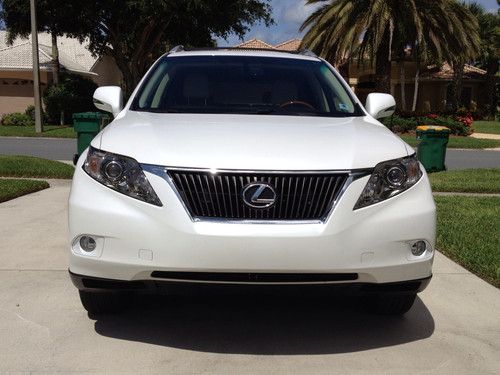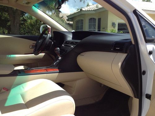 1 owner 2010 Lexus RX 350 SUV FWD with 66K miles. Florida car--garage kept. Excellent condition and very clean. White exterior with beige interior. 3.5L DOHC 24 valve V6 engine with 6 speed sequential shift automatic transmission. Fully loaded with options including power windows and locks, power and heated mirrors, power glass sunroof, power front seats-heated and cooled, am/fm radio, 6 disc cd changer, bluetooth system, backup camera(rear view mirror), XM satellite receiver, MP3 and USB plugs, Smart Key system with engine push start, power tilt and telescopic steering wheel, multi-function steering wheel, keyless entry and more