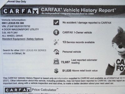 Florida 01 Rx 300 1-owner Winter/leather/prem Plus Pkgs Clean Carfax Rear Camera on 2040-cars
