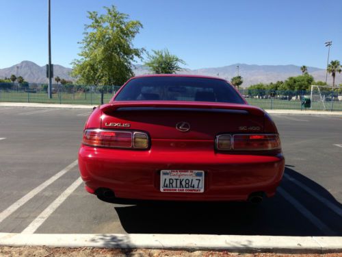 Available For Inspection In Palm Desert, CA.....An IMMACULATE Example of a Lexus SC400 Chrome Wheels...Gold Package...Two Owners...Mostly Highway Miles..Always Garaged...Never Seen Snow Clean Car Fax...Clean Title..Moon Roof...Just Serviced...12 Unit CD Changer...Books & Records Not New...But Looks Like New! |