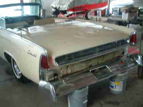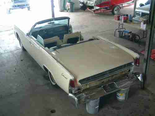I am offering up my 1962 Lincoln Continental 4 door convertible with 65,000 actual miles. The car was purchased in the spring of 1991 from the estate of Henry Shakespeare (owner of Shakespeare Rod and Reel Co. in Kalamazoo Mi.) I was told Mr. Shakespeare purchased the convertible in the fall of 1961 for his wife, and it remained hers until it was sold at auction in 1991. 62 Continental 4 door convertible 430 cubic inch V-8 with 65,000 actual miles Automatic Transmission Suicide doors Power windows and locks am-fm cassette Power seat Shortly after I bought the car I replaced the complete 4 muffler exhaust system, front and rear brakes, front and rear shocks and all four whitewall tires (Firestone sup-r belt deluxe champion J78-14) and are 95% of new. My wife and I drove the car every summer from 1991-1995 and always stored it in a heated garage during the winter. In 1996 I began a restoration project to the right side of the vehicle. There were a couple of thin spots behind the right front wheel and behind the right rear wheel, I cut these spots out, and just never found the time to finish the project. The right front and rear doors are rustfree with a few small dings that have been repaired and primed and are ready to be reinstalled. (see pics) The undercarriage appears to be solid. The car needs a good overall cleaning from sitting so long, but the black and white leather interior and the chrome should clean up nicely. We always enjoyed driving the Lincoln, it rode like a couch, and turned alot of heads everywhere we went. We entered it into a few local car shows, and took home a trophy for people's choice and earliest entry, just to name a couple. We enjoyed driving and showing the car so much that I decided to make it perfect, so the restoration project began. Shortly afterward I was in an accident, broke 4 ribs and my collarbone, so I couldn't finish. In retrospect, I wish I had just left well enough alone, the car was nice like it was and was already winning trophies. So now you know as much about the Lincoln as I do. Hope you enjoy looking at it. Happy Bidding!! we reserve the right to end auction early for local sale