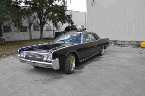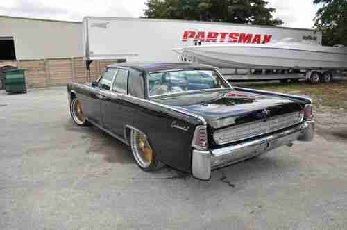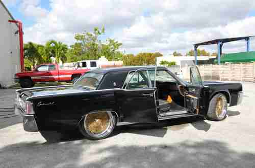 Here is a beautiful 1963 Lincoln Continental (California Edition). The car runs great. This car looks awesome and has a lot of detail into it. This car is equipped with 22'inch Dayton gold spoke wheels. It has custom interior work professionally done with black and suede beige. It has MB quart speakers and 2 amps with 2 12'inch subwoofers in the trunk. It is also loaded with a clarion equalizer and a Raptor capacitor for an awesome sounding system. The car is always well maintained and garage kept. Please bid with confidence! Buyer is responsible for shipping method. For any questions or concerns please call Manny 786 412 2669. Thank you, Good luck bidders!