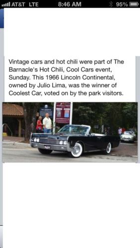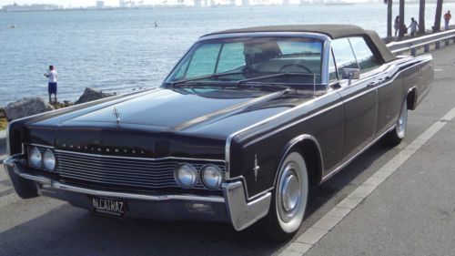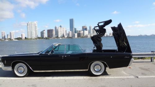 I bought this car 5 years ago from the second owner in California, which he had in storage for 25 years. This is a true rust free California car. This car is black with a black top and white interior with black stitching. I had this car painted 2 years ago. I'm talking about: doors, hood, trunk, etc everything came off. Sand blasted to the bare metal, everything has been redone except the motor. It has a 462 in excellent working condition with a little over 83,000 original miles, with an automatic transmission. All the chrome was taken off, the bumpers, handles, moldings you name it came off the car to be professionally sand blasted and re chromed. The alternator, starter, battery, radiator, hoses, cables, a/c compressor , have been rebuilt or replaced. The air conditioner condenser that the 1966 Lincoln brings is made of metal. I had it replaced for a new one made of aluminum which makes the air conditioner cool better. I'm in Miami and its hot here in the summer. The interior and top are brand new done by professionals 2 weeks ago, exactly like the factory the door panel stayed the same to keep the original pattern. The tires are white walls which have less than 300 miles on them. When it comes to the top I have changed almost all of the relays and motors that make this incredible top mechanism function. Everything is in perfect working order. The window switches have all been replaced, even the small vent windows work perfectly . I have over $45,000 invested in this car. I can say from 1 to 10 this one is a good 9. It's not a ten because I use the car and it has small nicks and nacks on the paint here and there but very minor. Like any old car convertible when it rains it has small leaks here and there, very small just needs a little adjusting if you've had any antiques before all old cars leak oil here and there. I have spent $$$$ and replaced almost all the seals from the top and windows they have all been ordered from LINCOLN LAND IN LAKE LAND FLORIDA, which specializes on Lincoln's. I have a stack of receipts, you can bring your mechanic before you buy and you could see for yourself what a great running engine this is. I have described and listed this car as best as I could, it has been kept in a warehouse. I had a second radio installed inside the glove box and 4 speakers (1 in each door and the other 2 , 1 on each side) thats the only thing not original. I have seen a lot of Lincoln's on eBay and in the streets and NONE compare to this one. I entered them in 2 car shows, 1 last year, it was a charity event in Miami Coconut Grove Barnacle Park. Out of 75 cars it was voted coolest car and the 2nd was the Art Of Palm Avenue in Hialeah Florida over 250 cars it was voted Best in Show. I could tell you that this car turns heads from young to old, they will look anywhere you go. People love this car, I love this car!!!. A lot of love has been put into it, I have been through a lot to get it to where it is at today. But I have to let it go... my loss, your gain. If this is what you are looking for? AND CAN AFFORD IT?? Im asking $37,500, but will entertain serious offers. If you would like to come see it in person: I'm in Miami. Believe me, it drives like a dream especially on the expressway.                                                                           "PLEASE NO DREAMERS!!!"                                           "THIS CAR IS SOLD AS IN NO WARRANTIES!!!!"                      *This car is also for sale locally buyer has the right to end auction early, thanks*  |