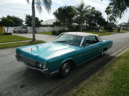 This beauty starts right up and runs great. Transmission works properly as do the brakes. The top goes through all of it's functions properly and both the inside top switch and outside rear top switch will operate the new top up and down. All of the windows work. I also had the rear window drop-down function fixed on both sides. This function actuates when either of the rear doors are opened and is important to the top, doors and windows working correctly. I have video of the rear windows properly dropping down as well as video of the top working which is on you tube but not allowed on ebay. Please let me know if you would like to see them. Mileage says around 40,000. but I cannot verify if accurate or not. Another extremely important consideration in purchasing a 60s Lincoln convertible is whether or not it has any rust. Most I looked at did in fact have several areas of rust which is extremely expensive to fix. This however is a clean Florida car. Look at the pictures showing the entire bottom of the car...solid...solid...solid! Again just about everything works on this car. There is a crack in the dash by the speaker which is true of most of these. The chrome is driver quality and the stainless trim in good condition. Most of the rubber is decent and have new trunk seal and bumper to body seal that go with the car. I would rate this car as a higher end driver but has additional added value with it's special uniqueness and the fact that it is loaded with almost every option available. This one is a real attention getter with people wanting to take pictures constantly. The value of this car is estimated around the $30,000. range according to a Lincoln expert that looked at it for me. My reserve is very much lower than that as I need to sell at this time. The 1967 was the last year for the convertible Lincoln and the 67's of which only a little over 2,700 were built has led to these jumping in value over the last few years according to the Haggerty Report and others.. These have a lot more options than earlier models and the preferable glass rear window. Also included is an original color sales brochure, original owners manual and shop manual (see picture) and the original build sheet that was behind the back seat (see picture). *Please feel free to email with questions and to setup an inspection of the car. Inspections must take place before bidding not after. If you do not personally inspect the car or have someone inspect it on your behalf then you must agree to positive feedback. I say this because although I try to disclose everything to my knowledge concerning condition of the car my opinion may differ from yours on certain issues. If you do not perform due diligence on this or any other vehicle then it would be totally unfair for you to leave negative feedback and ruin my rating because you disagree with something you should have been aware of before your purchase by having it inspected to your satisfaction or not. If you are a serious bidder I will send you my phone number to answer any other questions you may have. TERMS: I have the right to cancel any bids with fewer than 10 feedback's. If you do please contact me so I can do my best to determine if you are a serious bidder. Upon meeting the reserve, bidders must contact me by message or phone and demonstrate a serious intent to purchase. If I don't hear from you within a 12 hour period from your bid then I reserve the right to cancel your bid. Please do not bid at all unless you are a serious buyer with the wherewithal to complete the deal. All sales are final. The vehicle is sold as is, where is! Car is advertised locally and I reserve the right to close auction down at any time. This car will not be released until all funds are cleared. Deposits are not refundable. Overseas bidders are welcome....I will help the transport truck load your car.