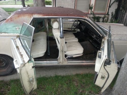 This is an extremely clean 1969 Lincoln Continental. I bought it to restore but my HOA is getting on me about having the car in my drive way so sadly i must sell it. The body is in great shape and super straight. I does has some areas around the rear wheels that will need rust repair but nothing major( see pictures). Will also need a patch in the driver side floor pan but the rest is solid. All the glass is in good condition(besides the the front driver side window is busted out $150 on ebay) the rear driver side door latch is not working properly( $35 on ebay). The interior is in good shape and usable once it is cleaned up. The 2 rear door panels are off but i do have them see the pictures. All the chrome and trim pieces are there are well all the way down to the stock hubcaps. The gas tank was removed to be cleaned out, I have it its just not installed. I currently have a bottle rigged up to show the car runs and drives( see gatoraide bottle in photos). The 460 motor runs strong and cranks right up the first try. I just put in a new battery. I have only driven it around the block to make sure the car ran and drove. I also have the front bumper that is not on in the pictures. The headlights, taillights and break lights all work. Breaks seem to work fine as well. Like i said this is a running driving project you can fix up as you go but still able to enjoy it along the way. I have the original bill of sale and will write you a bill of sale for the car. To get a clear title for the car here in Texas it is only $115 and can help you walk threw the step, but you will need to check with your states DPS to see the procedures but getting a bonded title is a pretty simple process on this old of a car. I see these models going for 4-5k in worse shape and not running but due to my situation and needing to get rid of the car ASAP I have set my reserve well below that so bid with confidence bc this car will be going home with the highest bidder.