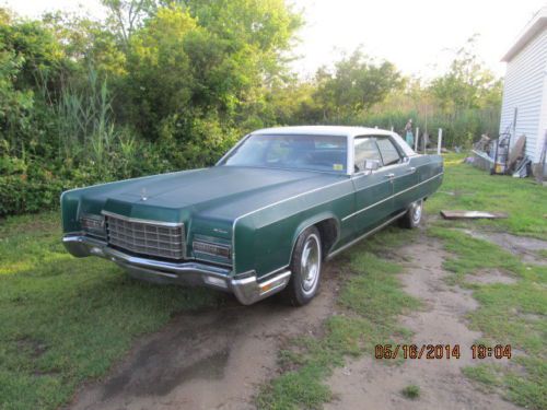 What we have for sale is a 1972 Lincoln town car that is in fairly good shape. The body does have some minor rust at the front fender edges and the right quarter. Again on the edge. The body on this car appears to be very straight, no major dings and no sign of bodywork. Vehicle has a new carburetor and a fairly new exhaust, both installed prior to my ownership. I purchased the car needing a fuel pump. Replaced fuel pump and vehicle fired right up although it needs a tuneup because there is an intermittent miss and a little lugging until warm. Transmission appears to shift fine, goes forward and back. Interior is in pretty good shape with the exception of the top of rear seat is dry rotted and would require replacement is restored. Dash has sun crack damage. I believe it is only one crack. The biggest issue I see with this car is the back glass leaks. Photos show bubbling around the back glass as it is a rust issue that has been repaired probably more than once. Frame is good with no rust and floors show no sign of rust. The body of this car again, is in fairly good shape. Factory ridge moldings that go from bumper to bumper all appear to be in good shape. The left fender mldg does have a dent in it. There may possibly be a ding or a scratch somewhere however overall good shape. The vehicle was refinished at some point. It appears to be acrylic enamel and has no gloss. I buffed a spot on the left rear and it did return some gloss but I don't believe it would last. Vehicle does appear to have some electrical issues as some of the windows work some of the time. Some do not work at all. I do not hear relay clicking so it may be a simple fix however I have not investigated. Power seat does not move. Again it may be a big or a small issue. I have not taken the time to look. Driver's trim panel is broken and in poor condition. Super glue works wonders. It would have to fix the panel. Anyone seriously interested in the vehicle feel free to contact me and I will perform some tests to try to determine if it is the motor, fuse, relay or simply lubrication for the windows and seat. I am in the middle of another car and have just not had the time to check some of these things. Additional photos are available. Auction is subject to end as vehicle is listed locally. Happy Motoring.