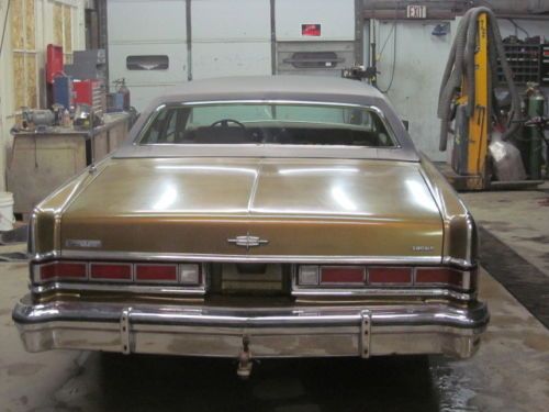 This car is original.Outside of the car is as clean and straight as it can be. Paint has a few scuffs and scratches, needs tires , rear left window is up but off track. This car runs and drives , starts right up in below zero temp..A/C does not work , heat works good ,cruise control that works ,tilt steering, power seat ,windows and door locks work. Nice stereo with 8 track. It has original owners manual and paper work from dealer, it has some surface rust underneath but no holes, no rust on the exterior, nice interior, very solid car. Car is located in Neenah, Wi. The car will need repair to headliner and vinyl top. There is a hole under the right visor and small wrinkle in the vinyl near the emblem. Feel free to ask any questions