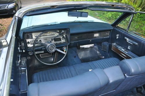 One of only 2276 produced in the final year for the convertible. High quality repaint in the original Powder Blue. Dark blue interior with blue carpet, both new. Vanity mirror on passenger visor. New white top. Rebuilt transmission and power steering pump. New exhaust manifolds (both sides); new rear springs; aftermarket in-dash radio with iPod hookup (original AM / 8 track radio is included), antenna is a "dummy" in the down position as I use the iPod. A/C blows cold and has been converted to 134a. Correct jack in place. Tires have excellent tread.