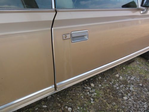 your bidding on a one owner with all original paper work. this car is running but needs tune up. driver window needs work. the motor works but will not roll down. Have new OEM replacement taillight lens and chrome bezel for passenger side. Has original floor mats still in plastic. the rear seat belts are still in plastic. the interior seat and carpet needs cleaning. 8 track works. Body is in straight condition and has little surface rust on bottom of left rear qter.