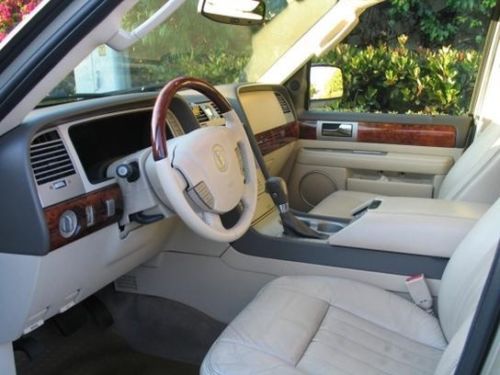 You are bidding on: 2004 Lincoln Navigator Ultimate Luxury 4x4 THIS ULTIMATE LUXURY NAVIGATOR COMES WITH ALL THE OPTIONAL FACTORY ADD-ONS!! I have taken the liberty of thoroughly listing all the this Navigators features, specifications, options, and add-ons. This is a great truck, fully loaded, in great condition, with only two minor upgrades needed. To sum it up, this truck will need new tires, and new brakes in the near future. Other than that, it is in GREAT CONDITION, and has been 100% reliable. There is an existing lifetime warranty on the suspension, and I also have the original Lincoln Manuals for the vehicle!! I know that it is difficult bidding on a vehicle you have not yet seen. I completely understand any anxiety you may experience while contemplating purchasing this vehicle. PLEASE REST ASSURED that the description of this vehicle is 100% accurate. I recently sold my Durango on eBay, and you can view the amazing feedback from the buyers in my ratings. This Navigator is my daily driver. I will be happy to take it in for a full detail, at my expense, before you accept delivery of the vehicle. Please, if you have ANY questions, inquiries, or concerns, do not hesitate to contact me. For local bidders, please feel free to contact me to arrange a test drive before bidding!! VEHICLE SPECIFICATIONS POWER AND PERFORMANCE Engine: 300-hp, 5.4-liter V-8 (premium) Engine liters: 5.4 Cylinder configuration: V-8 Horsepower: 300-hp @ 5,000 rpm Torque: 355 lbs.-ft. @ 2,750 rpm # of valves: 32 Sequential MPI: Standard Recommended Fuel: Premium Unleaded Aluminum Cylinder Head Engine Oil Cooler Ignition Type: Electronic Engine Orientation: Longitudinal Fuel Tank Capacity: 28.0 gal. Transmission: 4-speed automatic w/OD POWERTRAIN 130-amp. Alternator 650 CCA Battery Battery Amp Hours: (72Ah) Battery-Rundown Protection Ultra Low Emission Vehicle Single Stainless Steel Exhaust Automatic Locking Hubs Axle Ratio: 3.73 Control Trac Part and Full-Time Four-Wheel Drive Four-Wheel Drive Electronic Transfer Case 4-SPEED AUTOMATIC WITH O/D Overdrive: Standard Transmission Electronic Control: Standard Transmission gear ratio (1st): 2.71 Transmission gear ratio (2nd): 1.54 Transmission gear ratio (3rd): 1.00 Transmission gear ratio (4th): .71 Transmission gear ratio (reverse): 2.18 ESTIMATED PERFORMANCE SPECS 0-60 mph: 8.38 seconds 1/4 mile: 16.26 seconds at 80.42 mph Lateral Acceleration: .68 g Slalom: 51 mph SUSPENSION AND HANDLING StrutMasters Premium Conversion Kit w/Lifetime Warranty P255/70SR18.0 BSW AS Tires Steel Spare Wheel 18" Chrome Wheels BODY EXTERIOR FEATURES 4 doors Power Liftgate Power Remote Heated Folding Side-View Door Mirrors with Turn Signal Indicator Power Running Boards Chrome Door Handles Body-Colored Front and Rear Bumpers Rear Step Bumper 2 Front Tow Hooks Front License Plate Bracket Composite/Galvanized Steel Body Material Roof Rack (load 200 lbs.) Class III Trailering with Harness, Hitch Body-Colored Bodyside Cladding Body-Colored Fender Flares Body-Colored Grille with Chrome Accents CONVENIENCE FEATURES Automatic Dual-Zone Front Air Conditioning Rear Air Conditioning with Separate Controls Console Ducts Steering-Wheel Mounted A/C Controls 1st Row Express Open Sliding and Tilting Glass Sunroof Sunshade 3 Driver Memory Seat Settings (includes door mirrors & pedals) Cruise Control with Steering Wheel Controls Power Trunk/Hatch/Door Remote Release Power Windows with Driver 1-Touch Down Power Rearmost Window Activation Keyfob (all doors) Remote Keyless Entry Illuminated Entry Keypad Locking Integrated Key/Remote Auto-Locking Doors Keyfob Trunk/Hatch/Door Release Steering Wheel with Manual Tilting Power Adjustable Pedals Day-Night Rearview Mirror Auto-Dimming Rearview Mirror Illuminated Auxiliary Driver and Passenger-Side Visor Mirrors Garage Door Transmitter: HomeLink Navigation System Front and Rear Cupholders Full Floor Console with Covered Box Mini Overhead Console Rear Console with Storage Illuminated Locking Glove Box Driver and Passenger Door Bins Rear Door Bins Seatback Storage Pockets: 2 Audio Media Storage Driver's Footrest Retained Accessory Power 4 12V DC Power Outlets Ashtray SEATS AND TRIM Max. seating capacity of 7 Front Bucket Seats Driver and Passenger Heated-Cushions Driver and Passenger Heated-Seatbacks Ventilated Front Seats 8-Way Driver and Passenger Seat Adjustments Power Reclining Driver and Passenger Seats Power 2-way Driver and Passenger Lumbar Support Power Height-Adjustable Driver and Passenger Seats Power Driver and Passenger Fore/Aft Adjustment Power Driver and Passenger Cushion Tilt Front Center Armrest Rear Manual Reclining Full Bucket Seat Rear Manual Reclining 40-20-40 Split-Bench Seat Rear Seat Tumble Forward Rear Seat Center Armrest with Storage Fixed Third Row 60-40 Split-Bench Seat Fold into Floor Third Row Seat Leather Front and Rear Seat Upholstery Leather Door Panel Trim Carpet on Lower Door Panel Full Cloth Headliner Carpet Floor Covering Genuine Wood/Metal-Look Instrument Panel Insert, Door Panel Insert Metal-Look Console Insert Leather/Metal-Look Shift Knob Leather/Genuine Wood Steering Wheel Carpet Front and Rear Floor Mats Metal-Look Interior Accents Carpet Cargo Space Plastic Trunk Lid/Rear Cargo Door Cargo Light Concealed Cargo Storage ENTERTAINMENT FEATURES AM/FM stereo with seek-scan, 6-disc in-dash CD player Factory Subwoofer Factory Amplifier Speed-Sensitive Volume Steering-Wheel Mounted Audio Controls Multi-Source Rear Audio Controls 9 Performance Speakers 2 Factory Lincoln Wireless Headphones Entertainment System with DVD 1st row LCD monitor 2nd row LCD monitor Concealed antenna LIGHTING, VISIBILITY, AND INTRUMENT FEATURES Delay-Off Aero-Composite High-Intensity Headlamps Front Fog Lights Underhood Light Variable Intermittent Speed-Sensitive Wipers Front Windshield Visor Strip Fixed Interval Rear Window Wiper Rear Window Defroster Flip-Up Rear Windshield Deep-Tinted Windows Dome Light with Fade Front and Rear Reading Lights 2 Door Cur
