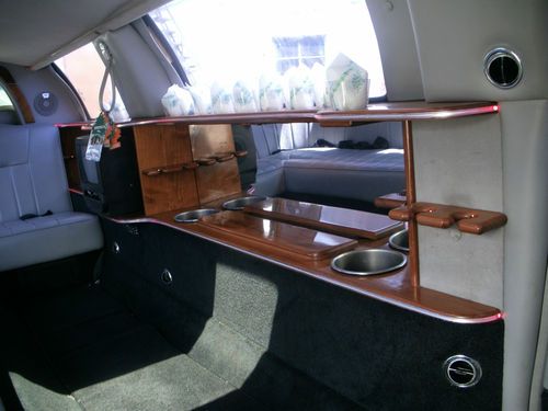 SHE FEATURES TWIN ICE CHESTS, CHAMPAGNE HOLDERS , HALO LIGHTING THAT CHANGES COLORS,CD RADIO, SUNROOF,PRIVACY DIVIDER.ITS GOT LIGHTING ON TOP AND ALSO IN THE BAR.EVERYTHING IS IN WORKING ORDER.RUBBER IS ALSO GOOD-2 NEW TIRES..SUSPENSION IS ALSO STRONG..FULL 120 STRTECHED BY SPRINGFIELD COACHBUILDERS.