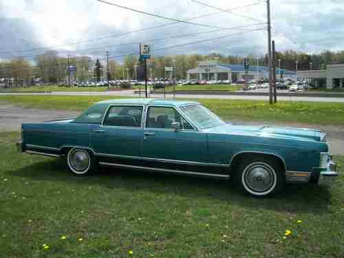 LOCAL PICKUP/WILL ASSIST YOU IF YOU SHIP. 1979 lincoln continental town car. This car is a time capsule and appears much as it did when new in 1979. The original engine and engine compartment decals,factory chalk mark on drivers side valve cover,are still in tact as they were when new. The lincoln is destined to be a collector as its unique color combination and low mileage.The car has been pampered,garaged,serviced regularly and has only been driven 800 miles per year. Have documentation for that time period. First owner put 18,000 miles on. The paint is triple green metallic and has been restored/repainted at a cost of $3,000. The new padded landau top was professionally installed at a cost of $1,500.The interior and trim pieces are factory original and in pristene condition and 100% original.The most recent trip to the ford garage had $414.00 FOUR brand new tires with (thick) whitewalls and period correct for that time period (not quite like the wide ones in the 50's) THE UNDERNEATH WAS INSPECTED BY A MECHANIC AND HE SAYS THERE WAS NO FLUID LEAKS AT THIS TIME. ORIGINAL SALES BROCHURE AND DEALER TO CUSTOMER POST CARD INCLUDED. ALL ELECTRICS AND GAUGES INCLUDING THE CLOCK AND AIR CONDITIONING FUNCTION AS THEY SHOULD. THE AIR CONDITINING STILL HAS THE R12 IN THE SYSTEM AND FUNCTIONS WELL. THIS LINCOLN IS A TRUE LOW MILEAGE CLASSIC AND A GOOD EXAMPLE OF LINCOLNS BEST AT THAT TIME PERIOD. THE CAR IS BEING SOLD AS A USED CAR WITH NO WARRANTY IMPLIED OR EXPRESSED AND AS IS. WE HIGHLY RECOMMEND INSPECTION PRIOR TO SALE AND WELCOME THE CHANCE FOR YOU TO SEE AND DRIVE THIS AUTOMOBILE. WE HAVE THE RIGHT TO END AUCTION EARLY AS IT IS FOR SALE LOCALLY.