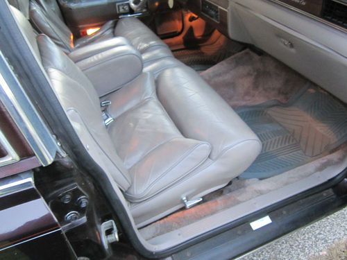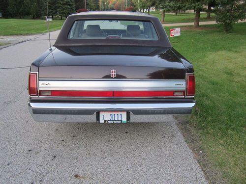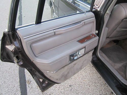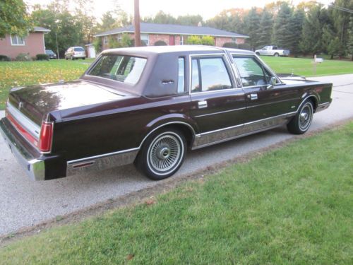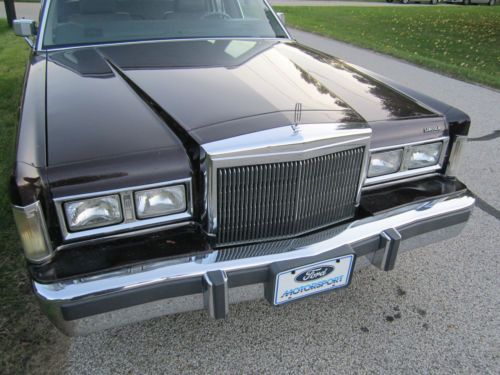 This is a really clean '88 Lincoln Town Car even though it has 144,000 miles. According to the previous owners, it has never seen winter, and it shows because there is no rust. The only paint on the car that is not original is the passenger quarter panel. The rest is original paint with all VIN tags in place. It has the typical Lincoln Town Car cracks in the drivers door armrest but the interior is really nice with no tears or rips in the seats. Car runs and drives 100% and the AC blows cold and the heater works great! Tires are like new with the factory Lincoln wheels in very good condition. Chrome on the bumpers is in very good shape with no rust or pitting. The color is a deep wine or burgundy with gray leather interior. The vinyl roof is very good with no cracks or tears. I am a small used car dealer in northeast Ohio about 5 minutes east of Akron in Suffield, Ohio. I am about three miles south of Summit Racing Equipment which is in Tallmadge Ohio. Please do not bid if you do not intend on following through with the purchase or don't have your funds in order. If you are the winning bidder and live outside of Ohio you will pay sales tax in your state of residence. Ohio residents must pay tax upon purchase of the vehicle along with $50.00 title fee. I do not believe in doc fees so there is none. A $200.00 non-refundable deposit is due at auction close through Paypal or I will accept a USPS money order sent next-day. I welcome you and strongly urge you to inspect and test drive this vehicle before purchase. Shipping is the responsibility of the buyer 100%, and I will assist your shipper in anyway I can. For questions, I can be reached at (330) 221-7760 toll free on my cell. Also, all the stainless trim is in excellent shape with no dents. The radio and cassette player works fine but the electronic display does not light up. I have tried to give an honest description of this vehicle, and believe the buyer will be very satisfied with the car. There is no reserve but the vehicle is for sale on the car lot and through other media, so I reserve the right to cancel before the auction ends. Thanks for bidding and good luck! Tim.