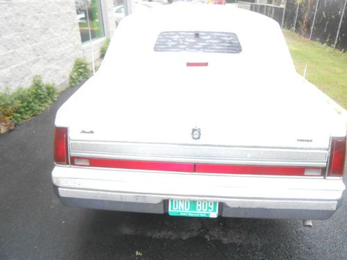 1989 Lincoln Town Car Stretch Limo-V8-Automatic-Leather-AC-Never used in livery service. Car has had very limited use over the last few years, but starts and drives very well. AC and heat both work, as does the passenger compartment dividers, lighting, tv. Due to the age of the vehicle, it is sold as is, where is, all sales final, with a clear Vermont Bill of sale (state of last registration). Prior to that, it was a clear NY title (In my possession).