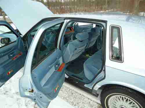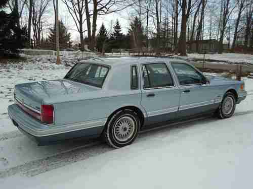 FOR SALE IS A 1992 LINCOLN TOWN CAR SIGNATURE SERIES SEDAN IN AMAZING CONDITION! IT HAS THE STANDARD 4.6L DUAL OVERHEAD CAM V8 ENGINE WHICH RUNS VERY SMOOTH AND HAS PLENTY OF POWER FOR CRUISING. THIS CAR IS WAY AHEAD OF ITS TIME, POWER EVERYTHING, AIR RIDE, KEY LESS ENTRY (WHICH WORKS) VERY COMFORTABLE BODY COLOR SEATS AND THE POWER LUMBAR AND SEAT POSITION CONTROLS WORK FLAWLESSLY. THIS CAR BELONGED TO MY GRANDFATHER WHO WAS THE SECOND OWNER AND HE TOOK GREAT CARE OF IT. THE ONLY BLEMISH ON THE CAR IS ON THE REAR BUMPER RIGHT UNDERNEATH THE TRUNK WHERE THE PAINT IS PEALING SLIGHTLY BUT IS EASILY REPAIRABLE AND THERE IS SOME DIS COLORING ON THE TRIM ON THE PASSENGER SIDE OF THE CAR. OTHER THAN THOSE TWO THINGS THIS CAR IS PERFECT. IT ALSO HAS BEAUTIFUL COOPER TOURING WHITE WALL TIRES THAT ARE IN GREAT SHAPE AND HAVE MANY MILES OF LIFE LEFT IN THEM. I DONT WANT TO SELL THIS CAR BUT WE ALREADY HAVE TO MANY RIDES IN THE FAMILY SO THIS ONE HAS TO GO. PLEASE CONTACT ME WITH ANY QUESTIONS, GOOD LUCK AND HAPPY BIDDING!