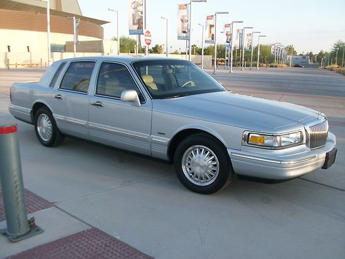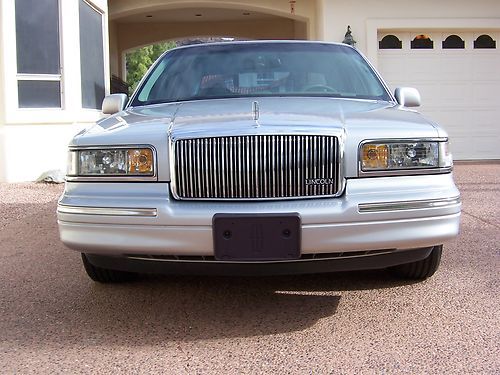 I am selling my one-owner '96 Cartier Town Car, finished in Silver Frost Metallic with contrasting Light Graphite (grey) leather interior. It has 93,700 miles, averaging 5,500 miles per year. This is a west coast snowbird car, having traveled back and forth between Vancouver, WA and Phoenix. The car has been serviced every 5,000 miles since new. This Town Car is in impeccable condition....the paint is beautiful, there are no dents (really), and the perfect leather interior is sumptuous for five full size passengers. All electric windows work flawlessly and the glass is excellent all around. The windows are all tinted and the tint is in great shape. The rubber seals/weatherstripping around the doors and windows are in fine condition. The A/C blows strong and cold, and all instruments, cruise control, and lights work properly, including the rear ceiling-mounted vanity mirrors/lights available only on the Cartier. This Town Car comes with heated front seats, upgraded JBL 9 speaker sound system, keyless entry, perfect headliner, and the 3 door Homelink garage door system. The upgraded 16" Lincoln alloy wheels have no curb rash and feature a matched set of Michelin Symmetry tires. The original Cartier embossed floor and trunk mats are in phenomenal condition as they have been covered with a second set of floor mats that also come with the car. Most Town Cars of this age have pitted/peeling chrome moldings...not this car...the chrome is perfect all around. The secret to the Town Car ride is the rear air suspension. The self-leveling suspension positions the body to sit level under varying loads, and has no air-bag/compressor issues or air leaks. Speaking of leaks, this Cartier's undercarriage is completely dry...no fluid leaks of any kind. As you would expect of a car of this quality; the owner's manual, original window sticker ($42,750), three keys/two remotes, jack, spare tire (donut), and tools are all part of the package. This is a non-smoker, no kids, no pets car that needs nothing. This Town Car has never been in an accident and has a perfect Carfax available for your inspection. If you are looking for an elegant, comfortable vehicle that gets great mileage for its size (17/25mpg on regular gas) and can accommodate several sets of golf clubs in its very large trunk, then this may be the car for you. The VIN is: 1LNLM83W3TY734875 and I have a clean and notarized Arizona title on hand. The car is priced a little higher than some on the market, but you will see the value when see/drive the car. Cadillac stopped building large luxury rear-wheel drive cars (Fleetwood Brougham) in 1996, while Lincoln continued producing the Town Car until 2011. They really don't build them like this anymore. This is truly a "needs nothing" Cartier.