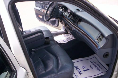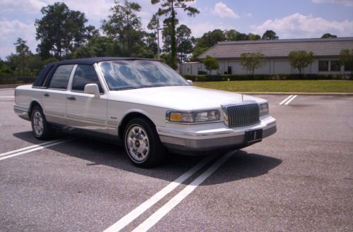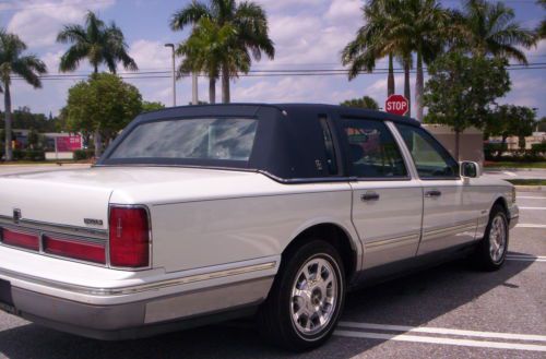 this is a very clean town car, it has pearl white 3 stage paint, dark blue carriage roof, beautiful light blue leather interior, it runs as good as it looks, has nice tires and wheels, This was a garaged car. give me a call Jim 954-205-5401