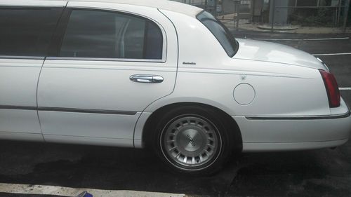 1999 Lincoln Town Car 72 in Limo for sale. This Limo was originally owned by a Large Executive who is no longer in the U.S. Owner decided not to ship limousine to his location and it has been in our storage for 2 years. It has not been been driven in over 2 years so it will need tune-up. Limo Needs new top, paint needs to be touched up in a few spots and a good wash, but leather interior is in good shape. When owner had car in use, he was meticulous about maintenance; all maintenance was done by Ford. Battery is dead so can't check exact mileage or take for drive. Last time checked , mileage was 133000. Has BLACK LEATHER SEATING WITH A BAR SECTION, ICE CHEST, CD STEREO SYSTEM. HAS GREAT LIGHTING.Title is clean and is in hand. Limo is sold as-is, where is. Never Been in an Accident. Buyer will need to arrange shipping. Selling for cheap to clear up space, our loss, your gain. Limo is just taking up space. Interior pictures available upon request. Serious buyers only. $500 non refundable deposit due immediately at close of sale. Car must be paid in full (Cashier's check or Cash) if cashier's check funds must clear before vehicle is picked up. Transaction should be complete in 7 days! We are considering all offers! Please don't hesitate to submit an offer! Thanks for looking!