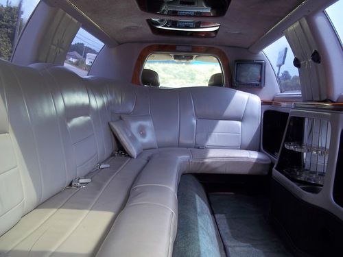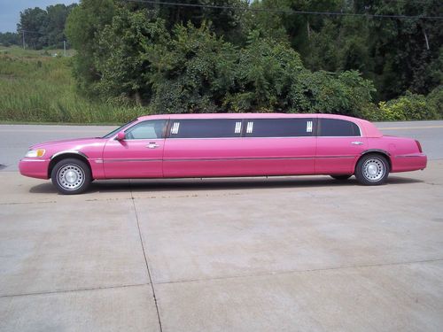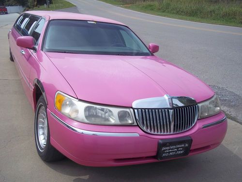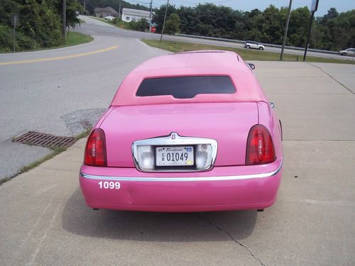 2000 Lincoln Towncar made by Crystal color pink miles 3564236 all leather sunroof cd player 2 batteries carpet ok rear bumper has 2 small punctures tv disconnected 2 led lights need to be replaced seats in fair condition windshield has 2 rock chips bar in good condition with fiber optic lights bar holds 8 flutes and 9 small glasses 2 ice bins champagne bucket 3 wine decanters no leaks some rust spots abs light on (ghost code) 120 in long