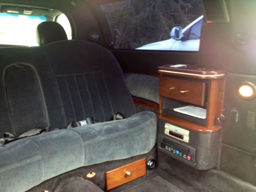 Features and Amenities Include: Front seats leather Rear custom cloth interior XO Vision electronic system includes Kenwood Stereo plus DVD and KEC VCR Two flat screen televisions, one 12" adjustable side mount and one rear facing 7" flat screen Five new tires with full rims Two interior side compartments; one for ice and one for storage Thee additional storage drawers plus two open storage compartments All wood trim including tissue holder and trash shoot to trunk container Moonroof with black out slide and double dark tinted windows Six additional custom reading lights Two sliding compartment dividers; one solid, one glass Includes two batteries; one for auto jump start; both engine mounted Garage kept, one driver Mileage 230,680 private vehicle not Livery Service non-smoking car A/C blows cold |