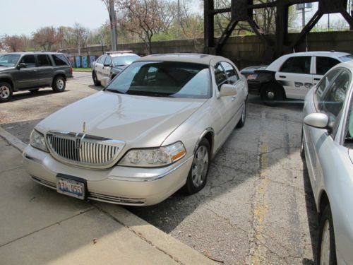 2003 Lincoln Town Car Cartier for sale. Vehicle was seized pursuant to a police investigation and is being sold as-is, no warranties. The car needs to be jump started to run, and when started it runs well. The car will need a replacement battery and/or replacement battery cables immediately. The drivers side front tire has a slow leak and will either need repair or replacement (a standard spare tire is included with the car). The tires still have tread left, but depending upon driving habits may need replacement within a year. The soft top has some stains that may or may not be removable. The interior is worn but can be salvaged with a good detail. The exterior has some minor dings, but no visible rust.