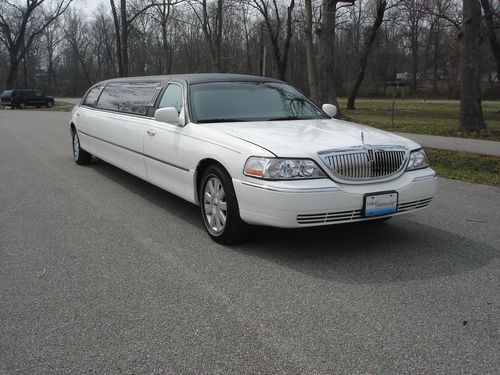 Very nice tuxedo edition 2004 Lincoln Town Car Limo. New headlights and grill and front end parts. Inside has just been redone from a newer limo. It has two new 7" tvs in the roof posts, both glass and solid divider. Long glass on sides. New roof also. Mileage shows 518,000 which is now just the body. The motor has 64,000 miles on it, the transmission has 125,000 miles on it and the rear end has 102,000 miles on it. Everything under the front end and rear end have just been redone all new. The airbags under the rear have been upgraded to heavy duty bags. The car runs excellent with cold air. This is a 120 inch stretch so it is an 8-10 passenger limo. It is a Springfield Coach with all new inside done in December. The roof was also put on in December. Just had all new braking system installed including master pump and all 4 calipers. I am by the Evansville, IN airport and can pick you up or help get it to you. Excellent limo that looks great. Call Christopher at 812-449-2348. Thanks.