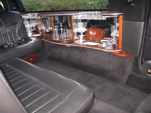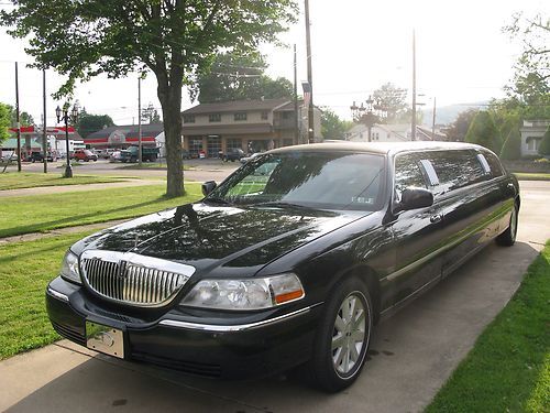 She is a real beauty, 2006 Lincoln Town Car Limousine, privately owned-I bought this vehicle used from Royale in Massachusetts for my wife and she doesn't use it as much as she thought she would. She has had 1 driver since she has the car. Well maintained, 8 passenger, 100 inch limousine with 105,000 miles. Garage kept. Black exterior, black stay-fast top, black leather interior, black carpeting with custom black carpet mats. All in excellent condition. Doors have key entry and coded entry. Driver cab all black leather, has the passenger seat, cherrywood accents. Master touch panel to control every function in the car. Passenger compartment in excellent condition, leather in excellent condition. Fiber optic lighting, changing color or solid light, floor lighting and console lighting. Full mirrored bar with all original glassware, 3 ice buckets, coffee set up with insulated coffee pot and coffee cups, All seats have seatbelts. Master touch panel in coach to control all vehicle functions to include-climate control, radio and CD player. TV in front of privacy panel also controlled from panel or remote. Intercom to communicate with driver. Vehicle is mechanically perfect, I own auto repair centers so the vehicle has always been checked thoroughly every time my wife went out in it. It has a 4.6 V8 engine, I have upgraded to a 200 amp alternator from Lincoln, new factory rear air bags, all new front coil springs, , brand new shocks and struts, new battery and heavy duty severe brakes, Michelin tires and a full spare on factory rim. Motor has always been maintained with synthetic lubricants. This is a Royale certified vehicle. I am only selling this vehicle because my wife no longer uses it like she thought she would.