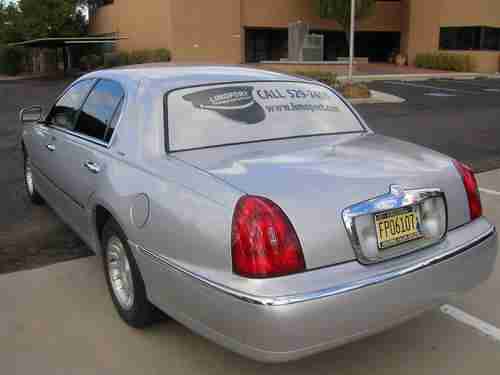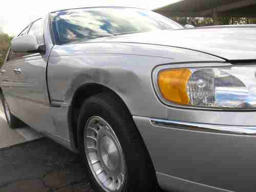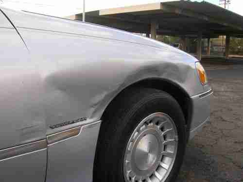 This is a grey 2001 Lincoln Towncar that has been used for several years by Limoport Transportation mainly for airport traffic. Vehicle runs strong and was in service as our airport fleet runner until a competitive transportation company pulled out and into the front fender panel less than one week ago. You can see the damage in photos. It will also need a power steering rebuilt pump soon which can be purchased on ebay for less than $100. Vehicle is being sold "AS IS" and must be picked up from our corporate office in Tucson, Arizona. We will not pay for shipping anywhere. Highest bidder will buy car! We will not kill auction and sell to you before auction ends so do not even ask!! Car has over 200K miles and has had dash replace as old dash went out. Except for recent fender damage it is a great car and can service a transportation company or family extremely well. CALL TO INSPECT CAR ANYTIME, 520--909-9200. THANK YOU, Dale