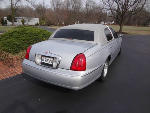 NO RESERVE! Lincoin Town Car. Very Nice Executive Car. The car looks and runs great. Silver Vinal roof with opra lights. Power everything,windows,locks,seats,cruse,A/C is cold. I have have all service papers. Needs Nothing and is ready to drive. I only use synthetic oil. Tires have 80% life left. Great Car for traveling. Rides like a Magic Carpet. I don't want to sell,but no longer have room in my garage. Located in Edgewater Maryland 21037. Has normal wear as it is a used car. Please see photos. Please email me if you have any questions. My feedback is 100%. Sold as is. Must pay deposit at auction end and pick up within 10 days of auction end. Bid only if you plan to buy. Thank you.