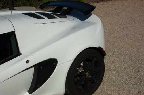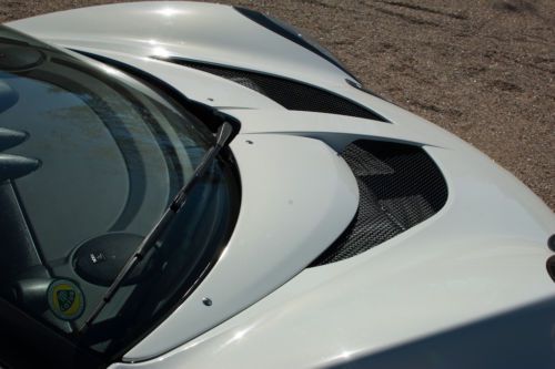 and an absolute blast to drive. This particular car was loaded from the factory with every option, White paint, Touring Package with leather seats and an overall more comfortable interior and an i-pod hook up. Additionally this car was prepared with a Carbon Fiber Splitter, Schroth ASM Racing Harnesses, Light Weight Battery, Custom Engine Tune and Katana II supercharger means this engine is making 255 hp! Also fitted is a Larini Sport Exhaust, Ferodo Street / Track brakes, rigid engine mounts, “bollock” shift knob, Toyo R888 tires, DBW Pedals. This car performs flawlessly and makes for an excellent affordable track car that can be driven to and from the track! With the weight reductions and the supercharger, this car is making 260 hp per ton; compare that with a NEW Porsche 911 that only makes 230 hp per ton. You decide how this translates into driving fun. This car is fully street legal with current California smog!!! There are not many track day toys that can be as reliable as a Toyota, with the performance of a super car. Most of the original factory Lotus parts are available with the car. These truly are excellent cars and are very rare with less than 300 imported to the US. This is an accident free car that is ready to be driven and enjoyed. This is a great value and these cars will undoubtedly be sought after as collectible cars in the future!!! This car earns lots of thumbs up everywhere you go and is a pleasure to drive. It would make a great addition to any collection or a weekend showpiece. I can help arrange shipping anywhere in the world and international