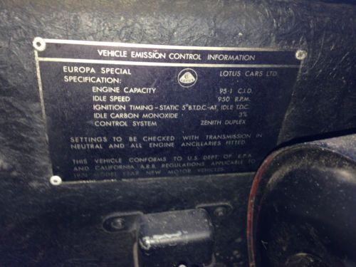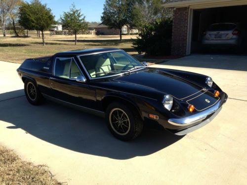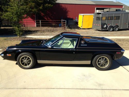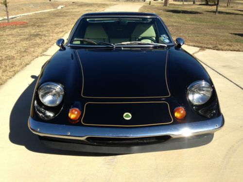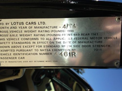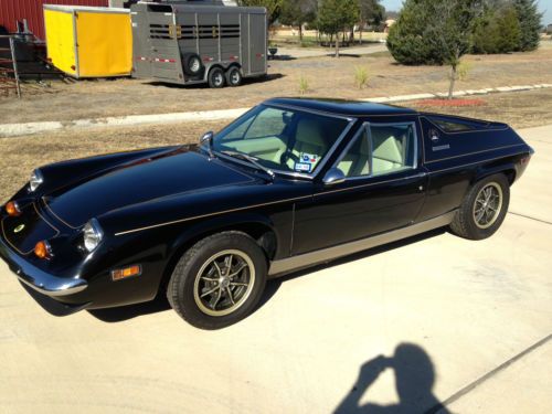 You are bidding on a 1974 Lotus Europa TCS. JPS black and gold colors with oatmeal interior. The car is in excellent condition, runs and starts easily. 5 yr old mechanical and cosmetic restoration. All new leather interior, rebuilt carbs, brakes, new tires at that time. Drives and handles correctly. Very minor imperfections here and there in the paint, no cracking anywhere of the fiberglass. Interior is beautiful. Original steering wheel has been replaced with smaller wheel, passenger door mirror needs new glass, radio antennae is not fitted. Original wheel, replacement mirror and antennae are included along with many spare and original parts such as original emissions equipment, shocks, spare window regulator and many other parts. Also included is a custom indoor flannel car cover along with the parts and service manuals. This is one of the best examples of this car I have seen. I have owned it for over 4 years and have had to do nothing to it, the previous owner did the original restoration. This 74 model was built late in the 74 model year and as such has the desirable gas struts for the engine cover. This was the best of all the Europas built, with the big valve TC engine, 5 speed, and best of all JPS colors. The previous owner added the JPS decals on the side of the B pillars, they were not original to the car. This car is very original. Most original parts that were removed or replaced, have been kept and are included in the sale. If you have any questions about the car, please let me know.
