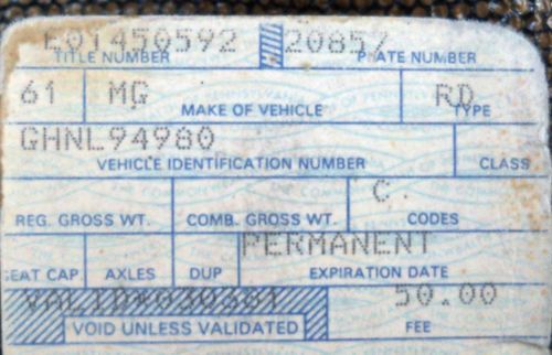 UP 4 BID IS A GARAGE KEPT, TWO OWNER 1961 MG MGA ROADSTER CONVERTIBLE. THIS VEHICLE HAS BEEN IN STORAGE FOR THE LAST 3 YEARS,BUT IS IN RUNNING CONDITION. HAS BEEN OWNED BY THE CURRENT OWNER SINCE 1963, WHEN IT ONLY HAD 11,000 MILES. CURRENT MILES ARE 69,381. THIS CLASSIC WOULD BE A GREAT SUMMER CAR OR COMMUTE RIGHT NOW OR GREAT TO RESTORE AND MAKE CHERRY. THERE IS NO RUST, BUT BODY HAS SOME DENTS AND IMPERFECTIONS. PLEASE LOOK AT ALL PICTURES CAREFULLY. IF THERE IS A SPECIAL PICTURE YOU WOULD WANT PLEASE E-MAIL AND I WILL TAKE IT.THERE ARE EXTRA PARTS WITH AUCTION. NEW 1962 GRILL, 2 CARBS, NEW STEERING WHEEL, AND 2 NEW CHROME AIR CLEANERS, CUSTOM TRUNK LUGGAGE RACK, AND A TRUCK MOUNT SKI RACK. MILES: 69380 VIN: GHNL94980 TITLE NUMBER: E01450592 THIS CAR IS TITLED AND REGISTERED AS A CLASSIC. PLEASE E-MAIL ME ANY QUESTION, THANKS 4 LOOKING MARKO