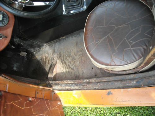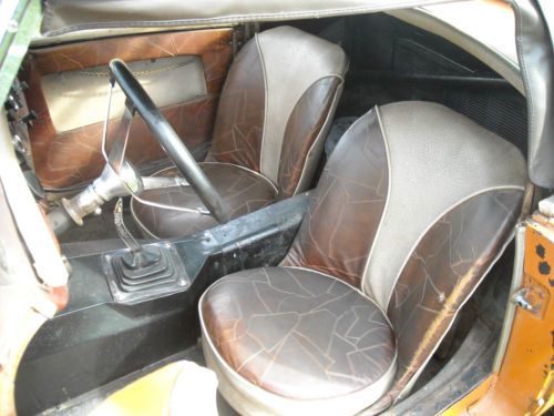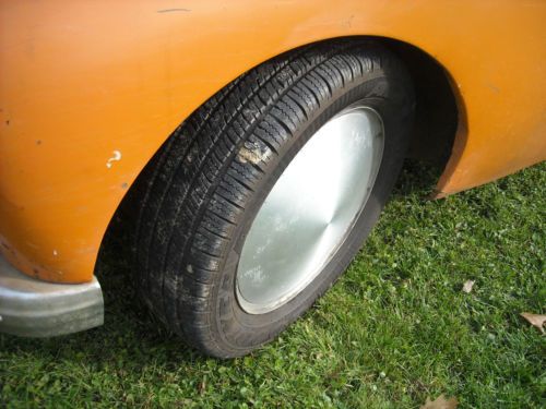 additional info....it has an original front suspension - mostly rebuilt....it has an electric fuel pump.....original 60's spun aluminum disc wheel covers...doors/trunk/hood open and close well.. .frame excellent with NO rot!...this was a tilt nose originally - previous owner welded it back together hence the rough-looking area across the mid front end lines - easy cover with a skinning of mud....traction bars too................I will include the old master cyl and 2 grilles that I got with the car and 1 yellow taillight lens....all else is gone.