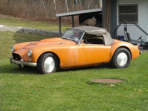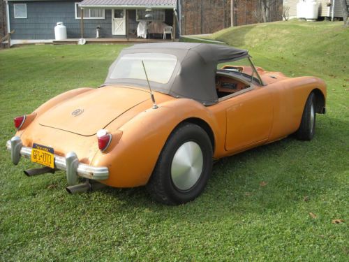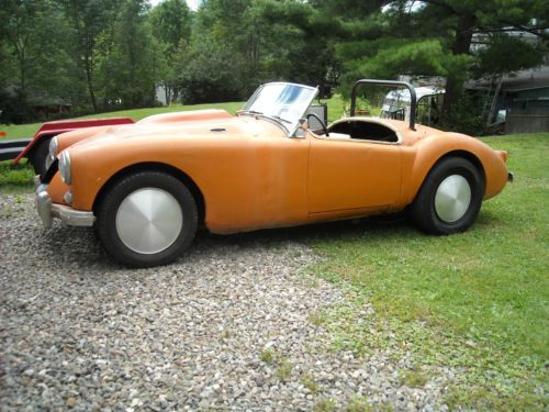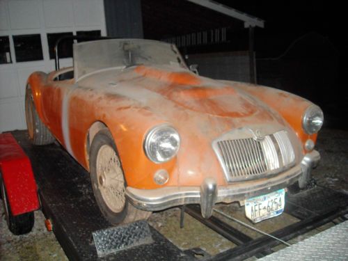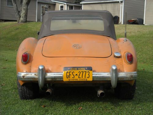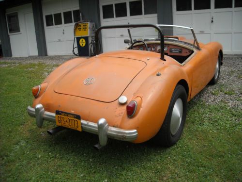 up for sale is my 1957 MGA roadster....I found it in a barn two years ago and after making it streetable, I now am selling the car... it is powered by a small block chevy engine 305 cu in- heads redone, 340hp 327 solid lifter cam, performer intake new edelbrock 4 bbl carb, most all engine parts were new, but were sitting for many years, but all perform as new or were replaced....it has a rebuilt 5 core copper radiator, electric cooling fan, ALL gauges work correctly, ALL lights inc turn signals work correctly, has working E brake, new tires, new brakes, new master cylinder, has hydraulic clutch release system, rack and pinion steering... complete new aluminized exhaust system w/ cherry bomb mufflers....4 lug steel wheels on front, front disc brakes/rear drum brakes... 5 on 5 1/2 ford steel wheels on the rear, new hurst shifter...the trans is a close ratio 4 speed - I was told it was an m22, but I cannot verify this unless I take the side cover off and I will let the new owner do this - it certainly IS close ratio and has the sound like an m22 gearing makes....the rear I was told was a 3.00 ratio, but again, I cannot verify this other than to say, it comes off the line good and has lots of power all thru the gears and pulls hard in 4th gear - this car will give a real cobra a run for her money!....the interior is a brown patchwork leather with beige trim, it had shag carpets which I removed to inspect the floorboards and threw the rug away - the floor is mainly plywood and is in great shape as is the metal around them the wiring is well done and not a rats nest - originally when built in the 60's, the car was powered by a 390 ford w/top loader which was replaced in the 90's with the current driveline and then put into another garage - in total, the car has seen maybe 2 years on the road - one of which I put on it this past year with NO troubles at all....it still has the am/fm cartridge player in it from the 60's... the interior was further modified in the 2000's with a new roll bar assy and steel tunnel - both professionally installed - this year I modified the roll bar so the convertible top could be used - down, it stores behind the seats out of the way....the front end has been stabilized with the addition of tubular supports to the firewall and the roll cage is affixed to the frame and in the trunk area frame as well...the top is in good condition with a foggy rear window - maybe it could be buffed more to allow better visibility....the top fits nice and tight and I made a removeable steel bracket to keep it tight to the center of the windshield frame as well...the body is very solid with no rust...little body filler....some dings and dents that I did not remove - I cleaned the hood and that was it....the front grille opening was modified - resembles a cobra to some extent - the car has adequate air intake and runs kool in the summer....the farthest I have driven in one clip is about 150 miles and then returned home the same day - the car rides pretty good too - better than my own hotrod roadster!... the car is NYS inspected - yes even the wipers work!...I love driving this car - it is fast, sounds good, and is dependable and with the top down in the summer looks great too....the trunk area is also, rust free and solid as a rock....some body work and its done, or drive it like it is and have a blast - looking to sell to complete another project ...I will ship anywhere in the world, but make sure if you bid from out of the country, you have a way to either come here and pay with cash, or do a secure bank wire transfer!!! - otherwise, do not bid!....I have a good shiping company for out of country sales, but if buying within the USA, you pick up or get your own shipper to get the car.....500 dollar deposit due within 2 days after sale is complete!!!...any other questions, please email...........................buy it now and get it first at this low price - needs NOTHING - fit for the road as-is!