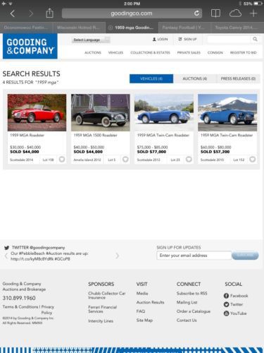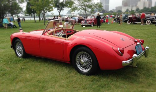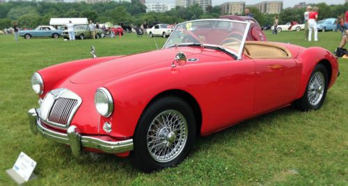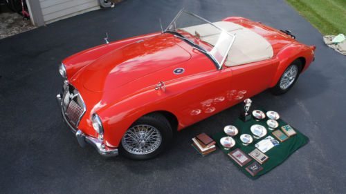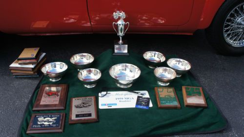 2014 Milwaukee Masterpiece Concours deElegance - British class Second Place: AACA 2014 Fall National Meet -40 point deduction for radial tires put it in the second place category (330-365/400 points) First Place: Stan Hywet Concours deElegance NORCCCA 1995 First Place 1991: British Cars at Hartwood - British Cars of Pittsburgh First Place 1992: VMCCA National Crawford Car Meet - Bath, OH First in Class MGA 1992: Shaker Square British Car Day VI First Place Award in Class 1994: British Cars at Hartwood First in Class MGA 1996: Shaker Square British Car Day X Best Paint: Kline's CafeCruise-In - Hudson, OH The vehicle is registered with NAMGAR (North American MGA Register) #1926 - 1959 1500 Roadster HDR43/65336 Chariot Red. Prior to the restoration in the late '80's, the car was white as shown in the photos (this is also consistent with the body tag #'s). Prior to me becoming the owner/caretaker of the car, it was owned by a gentleman whos goal was to have the car as a reliable Sunday driver. He and his wife would trailer it up to Door County, WI each fall to drive it around and see the fall colors. Over more than a decade of his ownership, he made several changes to make the car reliable and work out the gremlins that typically plague these little British cars. I have close to $20,000 in receipts for service and work that has been completed. Needless to say, this car is back to level that is at home as a Sunday countryside driver, on the track or even drawing a nice crowd at any show (including the Milwaukee Masterpiece this past August). This car has proven to be very reliable and very fun to drive. Here are some of the many items that have been done already: 2014 - New leather interior, convertible top, floor mats, misc. replacement parts (cosmetic).... 2013 - Complete brake overhaul and new carpet 2011 - Alternator conversion for reliability (original generator available), front disc brake upgrade 2010 - Rebuilt 1800 cc engine, clutch, exhaust header, new gas tank 2009 - Rebuilt Transmission, shocks & many misc. items 2008 - Fuel pump 2007 - Wiring misc. 2003 - carbs (original carbs available) and refinish Much of this work was completed by a very reputable MG shop near Milwaukee, WI that focuses their entire business on MGs. Based on conversations with them, they indicate 'that car needs nothing but to be enjoyed'. If you are looking for that classic roadster that truly needs nothing and can be enjoyed exactly as is, then this is your car. I consider this car to be a strong #2 condition (Hagerty valuation tools). If you are not familiar with Hagerty's tool, check it out at Hagerty.com. I also included a 2014 Gooding & Company auction result for a very similar 1959 MGA that has many of the same upgrades including the same engine (see photos). While this is not a Twin Cam car, with the 1,800cc MGB engine you can have the performance and style at a fraction of a cost of a twin cam MGA. The car comes with the original tonneau, side curtains and a full cover. The car is equipped with the original RadioMobile radio; however, I have not even hooked it up to see if it works (I have a new radio delete plate too). Also included are many of the original parts (generator, carbs, etc.) in the event the buyer wants to put them back on for originality purposes. All awards, trophies, silver bowls and a folder with all maintenance records, some specialty tools and old photos are included with the car. This is a Buy it Now listing; however, feel free to make an offer. The value of these great little cars is seeing an increase as the Austin Healeys, and other British cars are getting out of reach for the average classic car enthusiast. Potential buyers are encouraged to inspect the car or arrange for a third party inspection prior to bidding. |