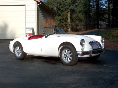 This MGA went through a total frame off restoration in 2009 by 2 very qualified MG mechanics with nothing being spared all new parts were used. This is not a original MGA due to the fact that a MGB 1800cc 5 main brg engine was installed for better highway driving.It has a stainless steel exhaust system,a engine fan with a oil cooler,electronic ignition with a alternator a 12 volt battery system. New tires and new Minilite rims with all new interior with a new top and a new tonneau cover the car is painted white with a pearl finish which is just stunning in the sunlight! I bought tjis car a few years ago and the car had only been driven about 3,000 miles since the restoration and sinced I have owned it I have maybe driven it about 1,500 miles so as you can see the car is still brand new! This car has always been kept in my garage covered and is very well maintained and needs absolutely no work at all just someone who wants to get the car out on the open road and enjoy her.Please feel free to contact Jim at 360-713-7253 if you would like more information on this sweet little MGA! Thanks
