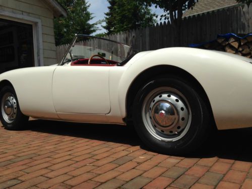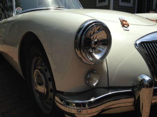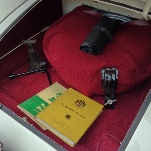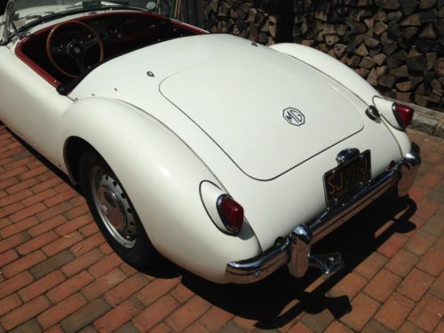 Up for auction is my early 1957 MGA roadster with only 59,778 original miles since new. This solid wheel car was built in January 1957 and is one of the first 25,000 cars built in the first year and a half of MGA production (chassis # HDR /25733, Engine # BP15GB/15891). I purchased this car from an estate sale in New Jersey owned by an elderly gentleman who owned the car since the late 1960’s. It was always garaged and regularly maintained and used as a weekend driver. He actually showed the car in Watkins Glen NY in 1958 and 1959 and have the plaques on the heater motor - very cool. The MGA retains its original 1488cc engine and 4 speed gearbox. It runs and drives great and is in amazingly rust free condition. The car comes with its original nearly complete tool kit, spare tire, jack, lug wrench and workshop manual. Overall Condition: The car is registered in New York State, recently passed its annual New York State safety inspection and garaged in Huntington, New York. The body panels are straight and rust free along with its solid and rust free frame. The car starts right up and runs strong all day long and drives like a dream. It is very smooth with great acceleration and excellent brakes. It was repainted its original Old English White color some years ago and the paint is in very good condition. The MGA has a new complete interior, new Robbins convertible top and Hartz tonneau cover, new carpet set and rubber mats. I have the original steering wheel that goes with the car. Mechanicals: The MGA runs and drives great. You turn the key, hear the fuel pump tick and pull the choke out three clicks and the engine starts right up everytime. It runs very strong and does not smoke or have any oil leaks. Once the engine warms up after a couple of minutes you push in the choke in and off you go. Engine idles around 800 rpms. Engine acceleration is smooth and sounds great. Oil pressure is strong at 60 psi and revs quickly to 6000 rpms without hesitation. Engine and gearbox are original to the car (engine # BP15GB/15891). Radiator and engine have been flushed and all hoses replaced along with a new water pump and belt. Engine runs cool with no overheating at all…. Valve adjustment was completed and the engine runs silky smooth. The battery is new and charging system works. The gearbox is the factory original 4 speed unit and all four gears and reverse work perfect without any noises or clunks. Shocks, steering, suspension and brakes are all in very good working order, needing nothing. Clutch feels perfect. All of the following was serviced to get the car on the road drivable and roadworthy: The following are NEW parts: