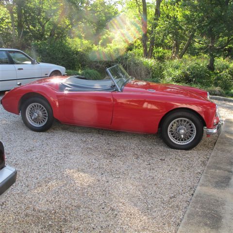 Mint, collectible condition MGA, restored to an exact standard by wealthy hedge fund manager in the UK and imported to US while employed. Numbers matching, Chariot Red, the MGA was recently recommissioned after remaining stored in a heated garage. Items included the replacement of all hoses, water pump, master cylinder, brake pad front pad set, rear brake shoes, clutch slave cylinder, etc. Strong oil pressure, runs perfect. Have receipts, mileage is believed correct and original at 63,700.