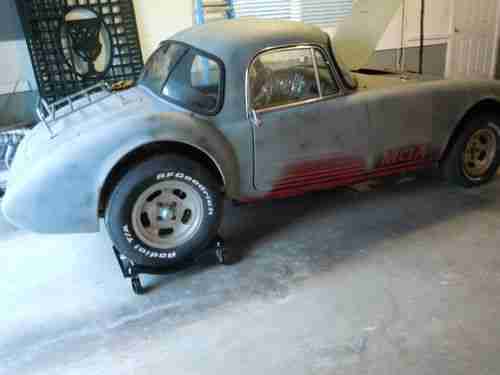 MGA coupe (1959) set up for a Chev. V6 motor and transmission (not included). Rolling rust free body. Front has modified to look like a Cobra-- done in fibreglass (easy to restore to original). All hardware is there- glass, door trim, guages, wood-rim steering wheel. MGB rear end. Slotted aluminium wheels. Good project.