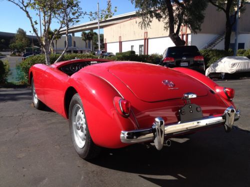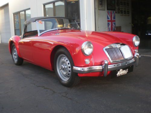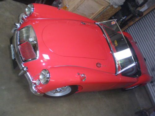 THIS IS THE SISTER CAR TO THE TWIN CAM MGA FEATURED IN THE RECENT ARMORALL COMMERCIAL . YD3/754 IS RESTORED TO THE SPECIFICATION IT HAD AS IT LEFT THE ABINGDON, ENGLAND FACTORY ON OCTOBER 27, 1958. COMMISSIONED FROM AUTO VINTAGERY IN 2012 AND DELIVERED IN 2013 THIS ROADSTER HAS ONLY DONE SEVERAL HUNDRED MILES SINCE COMPLETED. THE OWNER FEELS TOO TALL FOR THE CAR AND HAS ASKED ME TO FIND A NEW HOME FOR IT. THE ORIENT RED ROADSTER HAS FOUR WHEEL DISC BRAKES, A STANDARD REBUILT TRANSMISSION, DELUXE SEATS AND COMES WITH A DELUXE WOOD RIMMED STEERING WHEEL. THE PRICE IS $72,000 AS IS AND $69,000 WITH NEW STANDARD LEATHER SEATS. PRESENTLY FOUR ROADSTERS ARE UNDER RESTORATION AT AUTO VINTAGERY, EACH TAKING AT LEAST A YEAR TO COMPLETE. THREE ADDITIONAL ROADSTERS AWAIT SPONSORS. THEREFORE HERE IS AN OPPORTUNITY TO ACQUIRE THE REAL THING WITHOUT THE WAITING TIME. JAMES ALCORN 001 619 701 8488 WORLD WIDE SHIPPING AVAILABLE