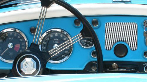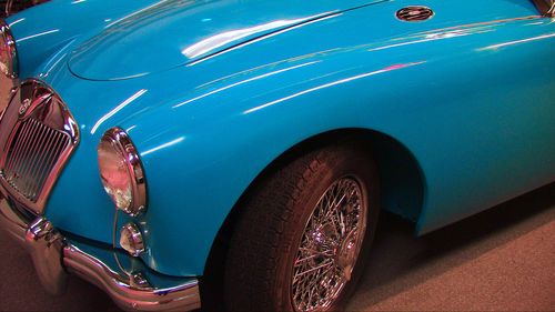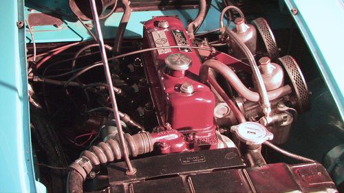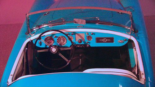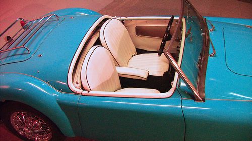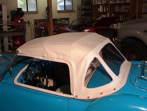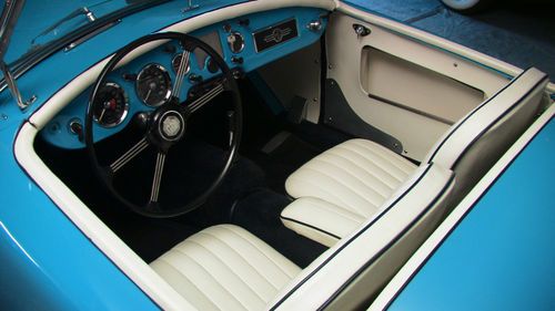 Offered with no reserve, a 59 roadster that has been newly restored with all the correct parts. rebuilt engine, trans., 60 spoke chrome wire wheels, new upholstery, steering wheel, rebuilt su carbs, new top and alot more. Unique blue color contrasting the dark blue carpet (new) and white cockpit ammenities. Trunk is also finished out with a dark blue carpet kit. Engine and transmission are not even broke in yet. It drives GREAT. New Pirrelli tires , new master cyl, brake lines,
