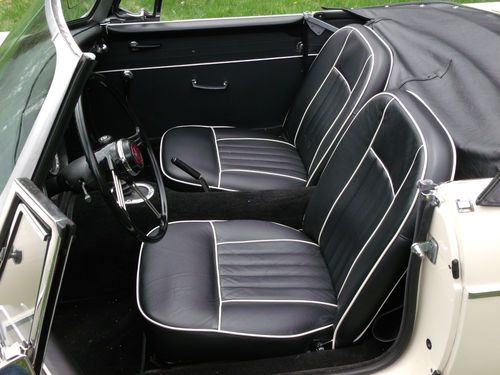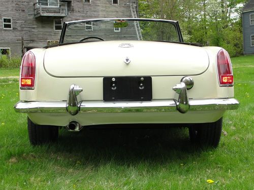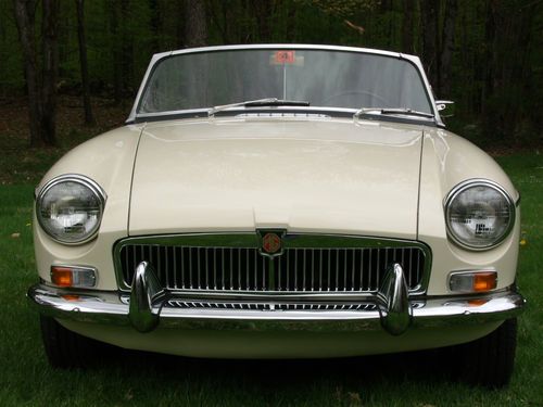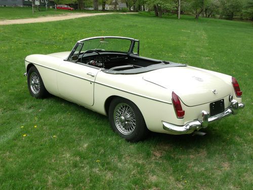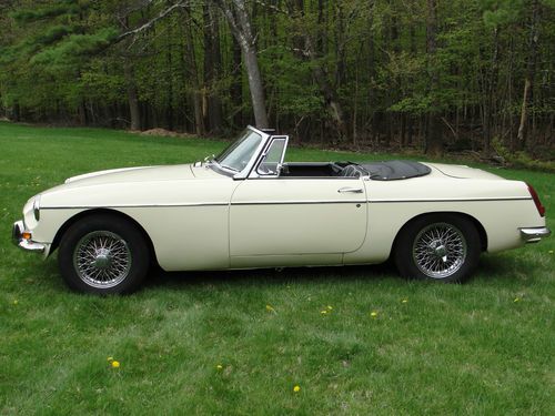 1963 MGB “pull handle” roadster. A great example that was meticulously restored some years ago to original specifications. Matching numbers engine runs smooth with great power delivery. Correct interior and exterior in the original factory configuration of “old English white” on black leather with white piping are in excellent condition. Has been upgraded with beautiful chrome “knock off” wire wheels. This particular car is a great representation of what a properly restored early MGB should drive and feel like. For additional photos or information please call Clarke at 603-587-0577.