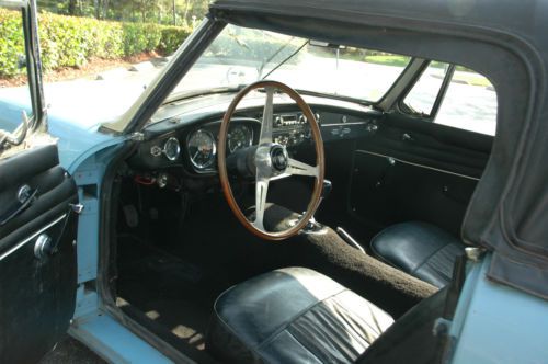 1963 MGB ROADSTER #S MATCHING CAR. RECENTLY OUT OF LONG STORAGE AND RE COMMISSIONED. CAR HAS ALL OF ITS CORRECT EARLY B CAR FEATURES. NARDI STEERING WHEEL. CAR RUNS AND DRIVES WITH CORRECT OIL PRESSURE. TIRES ARE IN EXCELLENT SHAPE WITH PLENTY OF TREAD. TRANS SHIFTS SMOOTH. BODY HAS SOME SMALL RUST BUBBLES. [SEE PICS] FLOORS LOOK SOLID BOTH DOORS HAVE TYPICAL CRACKS ON TOP. EASY REPAIR INTERIOR AND TOP ARE IN GOOD CONDITION. SEATS HAVE BEEN RE UPHOLSTERED AND THERE ARE NO TEARS. PAINT IS OLD WITH PLENTY OF IMPERFECTIONS BUT STILL HAS A NICE SHINE AND LOOKS GREAT FROM 20 FT OR DRIVING DOWN THE ROAD. THIS IS A CAR THAT CAN BE USED AS IS OR RESTORED TO THE LEVEL OF YOUR CHOICE. I AM MISSING ONE OF THE AIR FILTERS. PLEASE LOOK AT PICTURES AND ASK QUESTIONS BEFORE BIDDING INSPECTIONS ARE WELCOME PRIOR TO AUCTIONS END CAR IS SOLD AS IS SHIPPING COSTS TO BE PAID BY THE BUYER AUCTION COULD END EARLY AS THE CAR IS FOR SALE LOCALLY PAYMENT IS DUE IN FULL WITHIN 7 DAYS OF AUCTIONS END. VIA BANK WIRE/CASH IN PERSON AGAIN THIS IS A NO RESERVE AUCTION LAST BID OWNS THE CAR. THANKS FOR LOOKING. GOOD LUCK!!! |