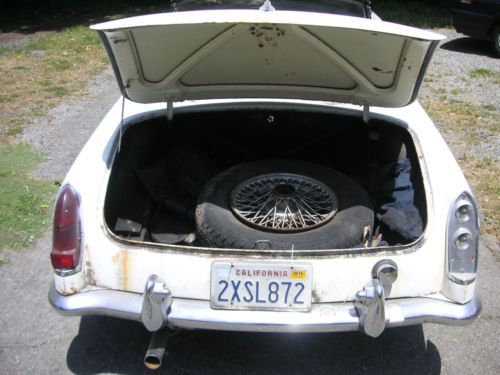 Barn Find In storage since 1993 Needs Restoration Car is mostly complete Engine and transmission are included Transmission is apart Engine was running well when removed Top bows , front bumper License plates and the grill are all included Body is very straight Rolls and Steers Wire Wheels Aluminum hood Weber Carburetor Has some rust holes in the floor pans and lower body skirts Clear CA. title with current registration Buyer to pay for shipping |